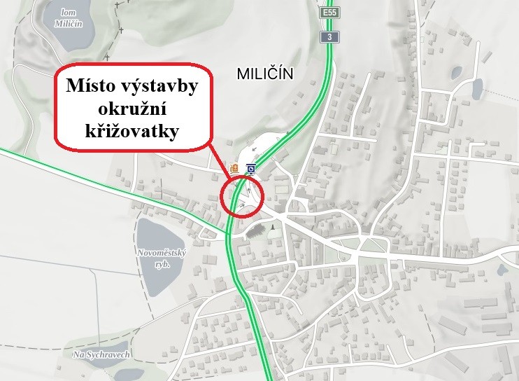 Jde o přeměnu současné stykové křižovatky silnice I/3 s místními komunikacemi, která se nachází mezi kostelem a čerpací stanicí. Podle posledního sčítání dopravy projede tímto místem denně zhruba 17 tisíc vozidel, až třetinu tvoří nákladní doprava. „Pro auta přijíždějící z vedlejších komunikací je napojení na hlavní tah velmi složité, zejména během dopravních špiček. Proto jsme se rozhodli pro přestavbu křižovatky na kruhový objezd, který zajistí větší plynulost i bezpečnost provozu,“ vysvětluje Jiří Veselý, mluvčí Ředitelství silnic a dálnic.