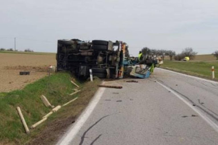 Nehoda se stala v pondělí 14. dubna před jedenáctou hodinou dopoledne na silnici I/23. „Na místě je převrácený nákladní automobil a silnice je neprůjezdná. Řidič nákladního vozidla utrpěl zranění,“ informovala policejní mluvčí Jana Kroutilová.