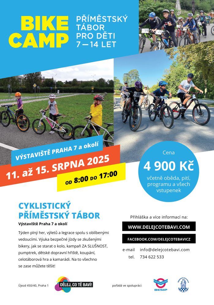 Letní prázdniny jsou ideální příležitostí pro děti, aby si užily pohyb na čerstvém vzduchu a zdokonalily své cyklistické dovednosti. Příměstský tábor Bike Camp, který se koná od 11. do 15. srpna 2025 na pražském Výstavišti a v jeho okolí, je určen pro děti od 7 do 14 let a nabízí pestrý program plný sportu, her i nových zážitků.