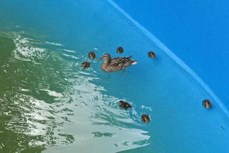 Ve středu odpoledne přijali luhačovičtí strážníci oznámení od obyvatelky z ulice Solné, která ve své zahradě objevila v hlubokém bazénu vyplašenou divokou kačenu s několika kachňaty. Mláďata byla příliš malá, aby se dokázala sama z vody dostat.