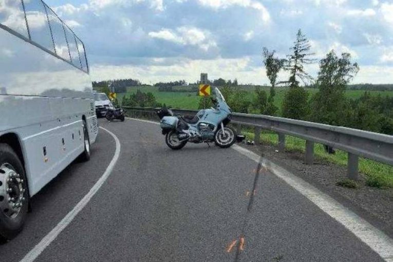 K nehodám došlo v pátek 30. května kolem půl páté odpoledne na silnici I/34. Čtyřiatřicetiletý řidič motocyklu Yamaha začal při jízdě z kopce předjíždět dosud nezjištěnou nákladní soupravu. Při zařazování zpět do pruhu nezvládl rychlost a v zatáčce prudce zabrzdil. Přitom najel na krajnici, narazil do svodidel a náraz ho odmrštil zpět na silnici.