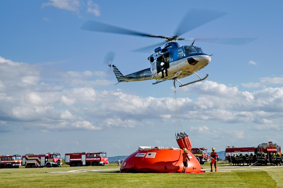 Hasiči se zaměřili na to, jak by probíhalo hašení v místech, kde není možné z taktických a praktických důvodů naplnit závěsný vak z volné vodní hladiny. „Profesionální a dobrovolní hasiči cvičili s vrtulníkem LS Policie České republiky, který má k dispozici mj. bambi vak o celkovém objemu 900 litrů,“ uvedla tisková mluvčí hasičů Jaroslava Benešová.