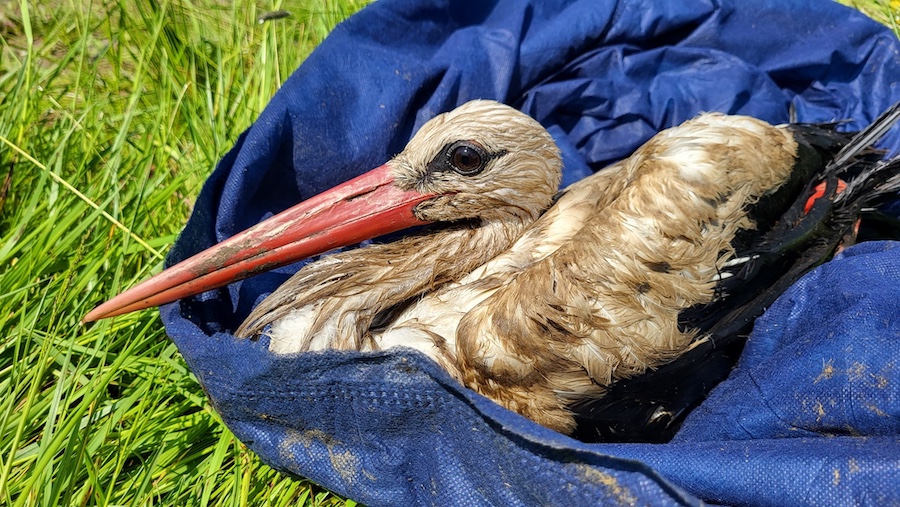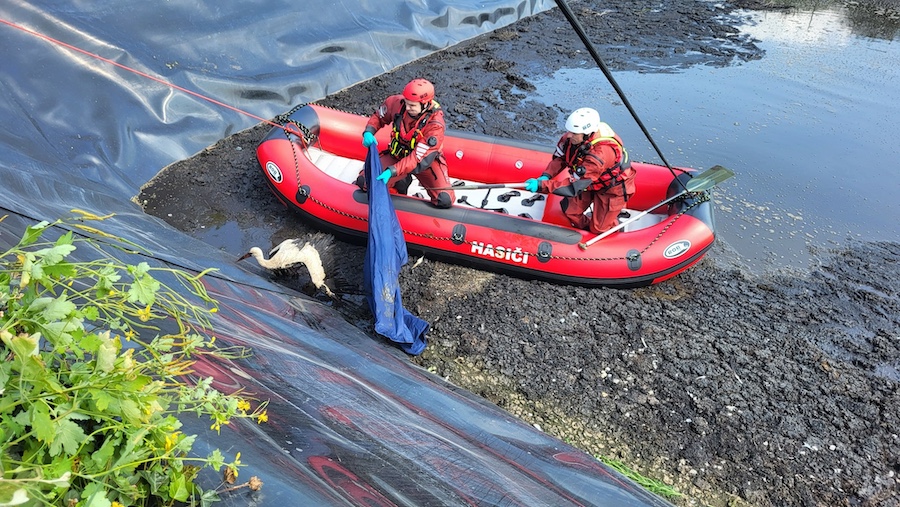 K záchraně čápa vyjeli ve čtvrtek 12. června před polednem. „Za pomoci člunu a lanových technik se dostali k poraněnému zvířeti a vytáhli jej na břeh, kde mu omyli křídla vodou. Následně ho předali do péče pracovníka záchranné stanice pro volně žijící zvířata,“ informoval Hasičský záchranný sbor Libereckého kraje na svém facebookovém profilu.