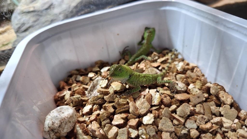 Vedoucí vzdělávání Daniel Koleška upozorňuje i na další zajímavost: „Drakouni mají výrazně modře zbarvenou sliznici oka a tlamy. Nevíme s jistotou, k čemu slouží, ale pravděpodobně jde o formu zastrašování nebo komunikace.“ Právě toto zbarvení dodává ještěrům až pohádkový vzhled. Drakoun chameleoní žije ve vlhkých tropických lesích jižní Malajsie, Sumatry a západní Jávy. Ačkoli jméno napovídá, že mění barvu, nejde o chameleona – patří mezi agamy. V Zooparku Zájezd jde o první úspěšný odchov po čtyřech letech, a zároveň jediný v Česku. V celé Evropě jsou jen čtyři zoologické zahrady, které tento druh chovají s obdobným výsledkem.