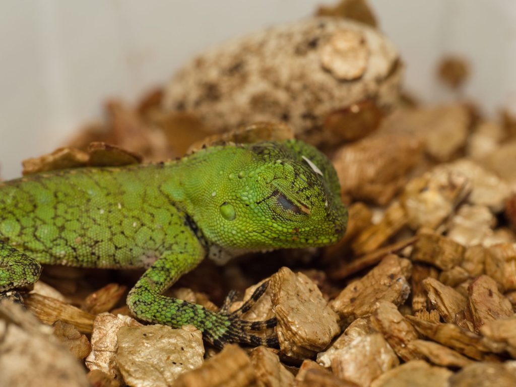 Druhým šťastným přírůstkem je bičochvost sakishimský, u něhož se podařilo první mládě odchovat vůbec poprvé. Skupina těchto štíhlých ještěrů obývá zázemí mimo pohled návštěvníků. Samice kladou jedno až dvě vejce do vlhkého mechu, odkud je chovatelé přemísťují do inkubátoru. V dalších dnech se očekává vylíhnutí dalších mláďat.