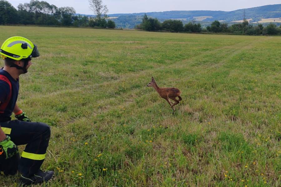 Kanalizační skruž s úzkým potrubím uvěznila srnku v hloubce skoro jeden a půl metru. Na místo přijela jednotka hasičů ze stanice Seč a dobrovolní hasiči z Prachovic. Do celé akce se zapojilo devět hasičů, kteří se pokusili nejprve srnku vyhnat proudem vody, ale zvíře zůstávalo schované a nehybné. „V místě byla k dispozici těžká technika, a tak jsme nechali pomocí bagru vyhloubit přístupovou jámu u potrubí,“ objasnil na Facebooku situaci Michal Secký ze stanice Seč.