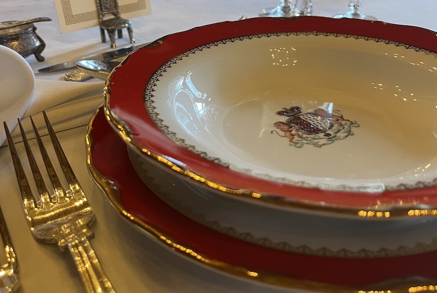 V tuto chvíli je v zámecké jídelně a přilehlé přípravně naaranžováno celkem 20 hlubokých talířů o průměru 23 centimetrů, a 20 mělkých talířů o průměru 25 centimetrů, což dokresluje vizuál a užití originálu a pro představu návštěvníků považuje správa objektu tento počet za dostačující. Společně s příborníkem a servisem byl do zámecké jídelny umístěn i nový koberec, díky kterému si návštěvníci mohou celý stůl obejít kolem dokola.
