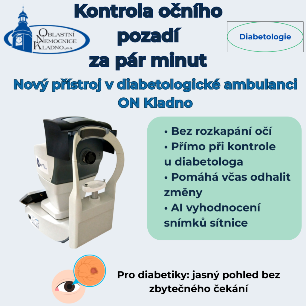 Vyšetření očního pozadí se doporučuje diabetikům jednou ročně. Díky nové technologii v Kladně to teď půjde rychle, jednoduše a hlavně včas – ještě než začne být ohrožen samotný zrak.