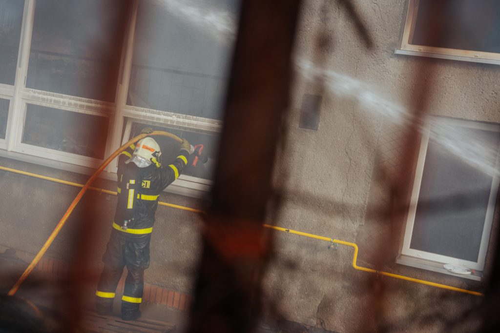 Místo zásahu hasiči rozdělili na 3 úseky, na kterých probíhalo hašení, a to pozemní cestou i pomocí výškové techniky. „Během zásahu nedošlo ke zranění zasahujících hasičů. Situace si vzhledem k zasažené ploše a charakteru hořícího objektu vyžádala vyhlášení III. stupně požárního poplachu,“ rozvedl dále mluvčí. Stupeň požárního poplachu postupně klesal. Krátce před třičtvrtě na osm večer velitel zásahu rozhodl o snížení na I. stupeň požárního poplachu.