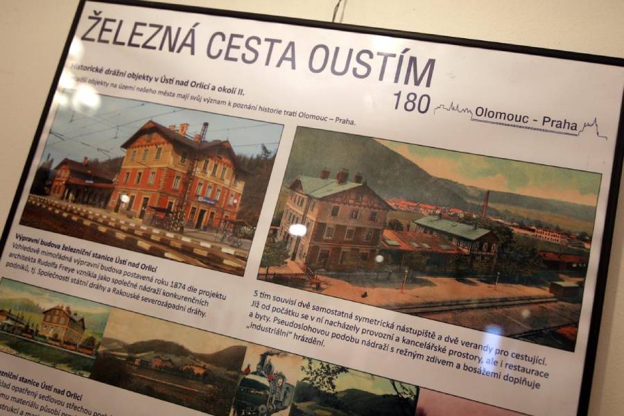 Hlavní expozice „Železná cesta Oustím“ vám přiblíží sto osmdesát let železnice, která prochází městem. Doplňková výstava „Tiché stroje – terapie barvou Davida Merty“ zase odkryje autorovy kresby strojů. „První výstava mapuje zahájení provozu na trati Olomouc–Praha a především proměny, které železnice vyvolala v Ústí nad Orlicí a okolí. Návštěvníci uvidí množství autentických předmětů – od staničních razítek, plánů, účtů a jízdních dokladů přes tabulky lokomotiv až po zabezpečovací a signalizační prvky včetně pák stavědla. Panelová část přibližuje historické fotografie, mapy i technické zajímavosti místního provozu,“ uvedlo vedení města.