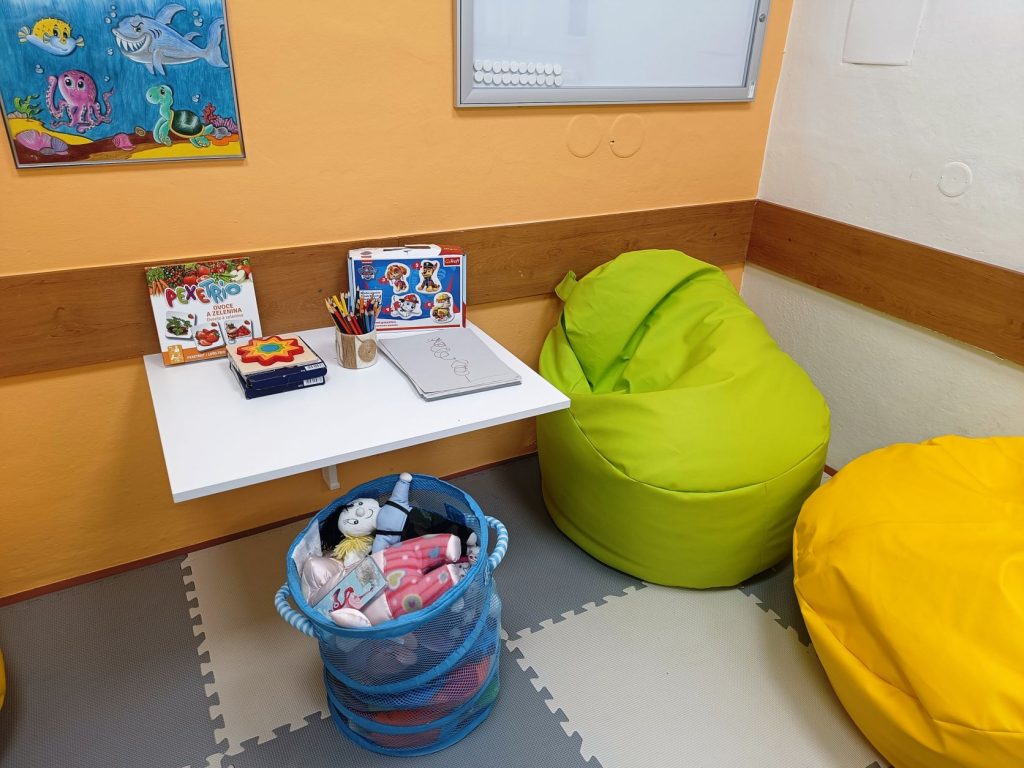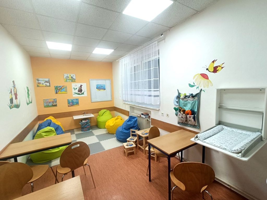Prokoukla návštěvní místnost, děti v ní najdou hračky, je zde i přebalovací pult