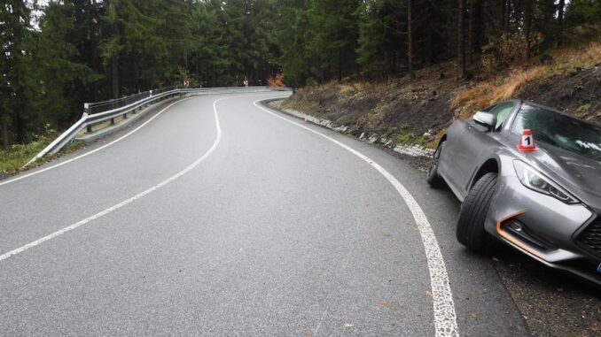 Dopravní nehoda se stala v úterý 28. října krátce před desátou hodinou dopoledne na silnici III. třídy v katastru obce Světlá pod Ještědem. „Řidič nepřizpůsobil svou jízdu stavu a povaze mokré vozovky, vlivem čehož při projíždění levotočivé zatáčky uvedl vozidlo do nedotáčivého smyku a přejel do protisměru, kde se vůz spodní částí střetl s hranou dlážděného příkopu. Následovalo sjetí do dlážděného příkopu, kde ještě automobil ujel asi dvacet metrů až do svého zastavení opřený o levý bok,“ popsala tisková mluvčí KŘP Libereckého kraje Klára Jeníčková s tím, že naštěstí nedošlo ke zranění.