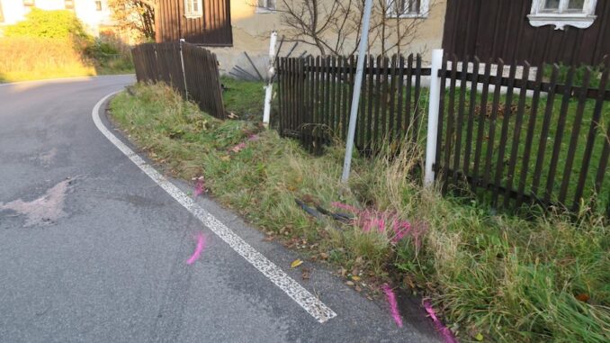 JABLONECKO – Nepřiměřená rychlost stála za víkendovou bouračkou ve Smržovce na Jablonecku. Řidič Peugeotu 206 tam v ulici Údolní nezvládl průjezd levotočivou zatáčkou, vyjel mimo silnici a narazil do dopravní značky i plotu přilehlého domu.