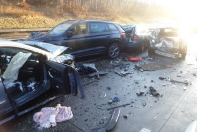 Později upřesnila, že na místě havarovalo devět osobních vozidel, nákladní vozidlo a dodávka s přívěsem. Šest osob utrpělo lehká zranění.