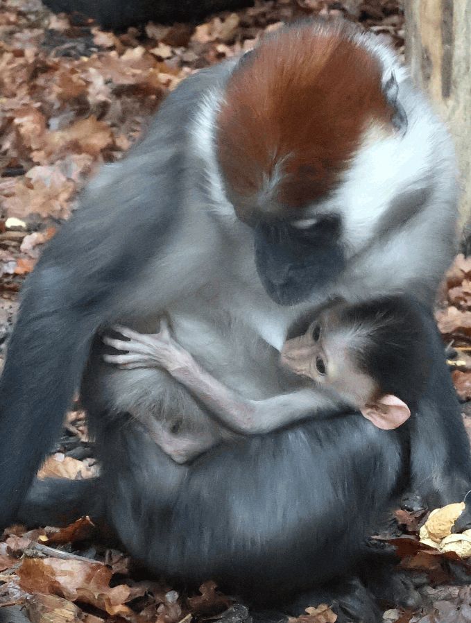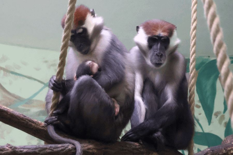 Druhé mládě se narodilo začátkem prosince, samice si jej zatím pečlivě hlídá a kojí. Více se osamostatní zhruba po půl roce, ve skupině zůstávají mláďata i několik let. Pohlaví určíme až při jeho čipování. Podle pozorování to ale vypadá, že starší sourozenec z loňského května má bratra. Mangabej rudohlavý obývá hlavně západoafrické deštné pralesy, je typický rudo hnědou srstí na hlavě. Jeho ocas je delší než tělo, má také lícní torby, do kterých si může uschovávat potravu.