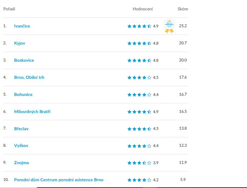 V kyjovské porodnici si tohoto ocenění velmi váží. Recenze od maminek jsou důležité. Právě jejich zkušenosti nejlépe ukazují, jak porod a péče po něm skutečně probíhají. V hodnocení se maminky vyjadřovaly mimo jiné k tomu, zda byly porodní plány připraveny předem, jak probíhal samotný porod a případné zásahy, jaký byl první kontakt s novorozencem, jak vnímaly přístup zdravotníků a podporu při kojení, jak hodnotily kvalitu a odbornost personálu oddělení šestinedělí.