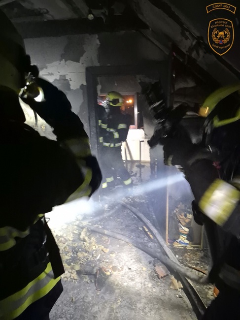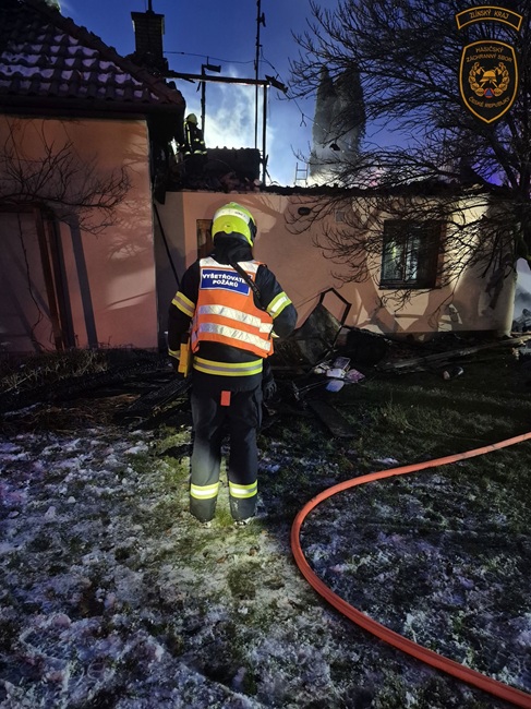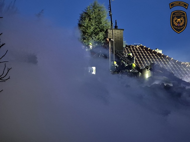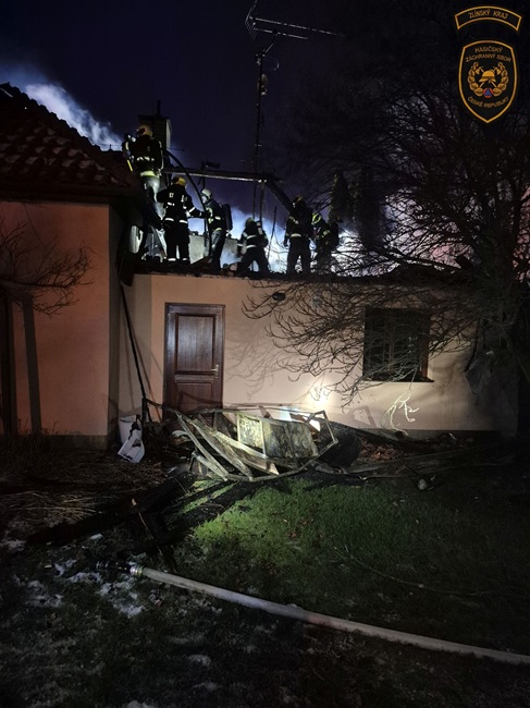Po příjezdu první jednotky se ukázalo, že požár zachvátil velkou část rodinného domu a dále se šíří na sousední objekt. Hasiči okamžitě zahájili hasební práce.