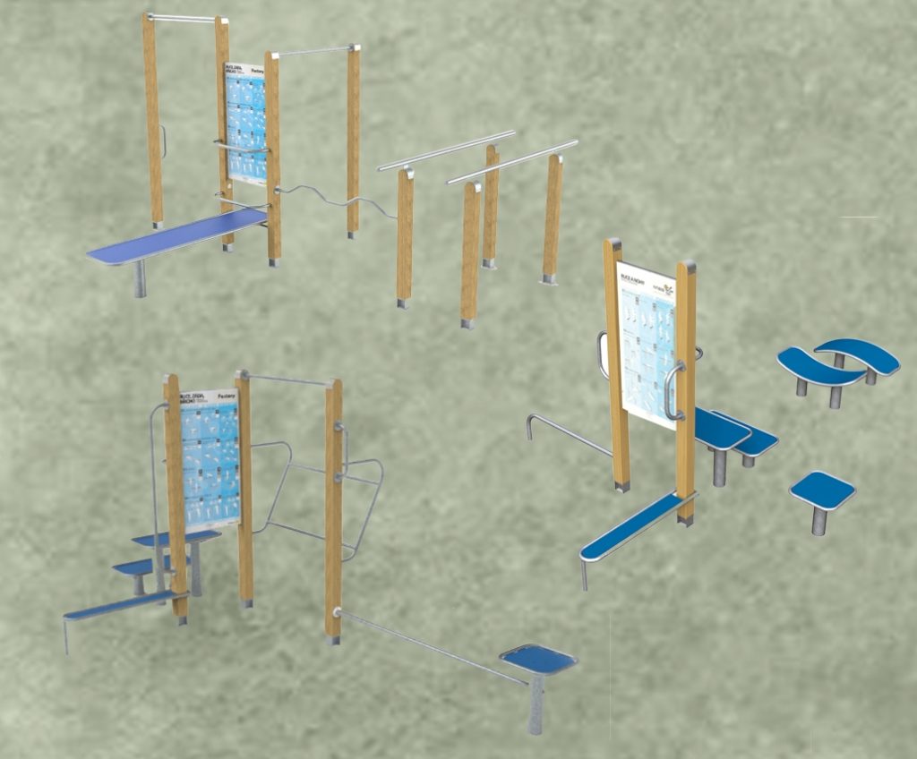 Plocha s fitness prvky ze dřeva určena náctiletým a dospělým poslouží k protažení a posílení těla. Prvky jsou sloučeny do jedné dopadové plochy z lité pryže s povrchem tlumícím pád. Pro lepší viditelnost i bezpečnost budou v místě světla. Území doplní lavičky k sezení pro děti i dospělé, či odpadkové koše a informační tabule.