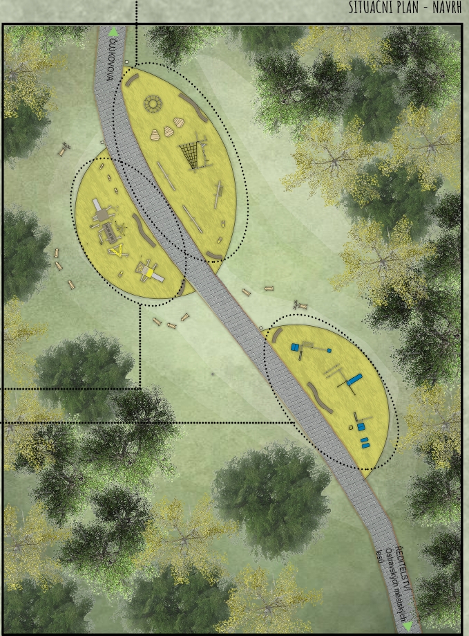 Kolem hřišť budou prvky k sezení na trávníku, kde stávající dřeviny poskytnou dostatek stínu. „Použijeme opět akátové dřevo, doplněné kovovými prvky a nerezovými skluzavkami,“ doplnil závěrem Boháč.