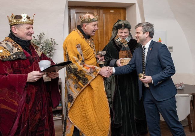 KROMĚŘÍŽ – My tři králové jdeme k vám, štěstí zdraví vinšujem vám… Známá koleda dnes zněla kroměřížskou radnicí, kam zavítali koledníci tříkrálové sbírky. Organizuje ji Charita ČR. Výtěžek sbírky, která se letos koná pošestadvacáté, je určen nemocným, handicapovaným, seniorům, matkám s dětmi v tísni a dalším lidem v nouzi.