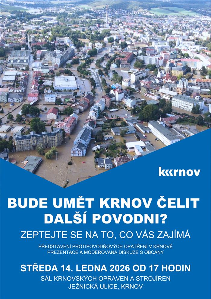 Setkání se uskuteční v sále Krnovských opraven a strojíren v Ježnické ulici ve středu 14. ledna, v 17.00 hodin. „V úvodu pan starosta představí všechny kroky, které město v oblasti protipovodňové ochrany dělá. Věnovat se bude vodní nádrži Nové Heřminovy, krnovskému projektu Řeka ve městě a protipovodňovým opatřením jak na řece Opavě, tak i na řece Opavici,“ uvedla Kristýna Kutálková z odboru rozvoje města Krnova.