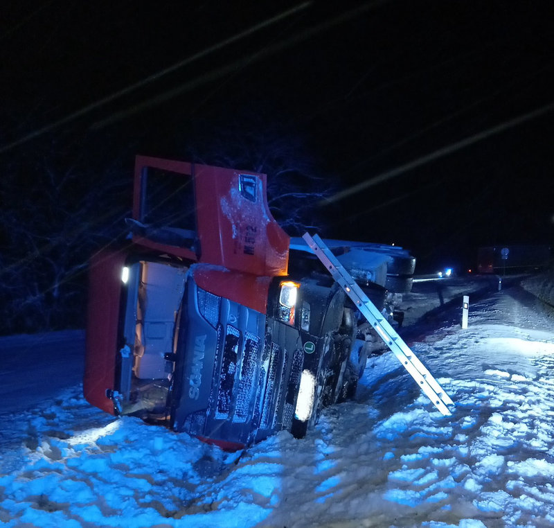 Kamion skončil v příkopu, silnice byla uzavřena
