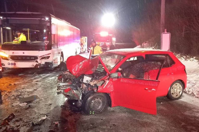 Střet autobusu s osobním autem