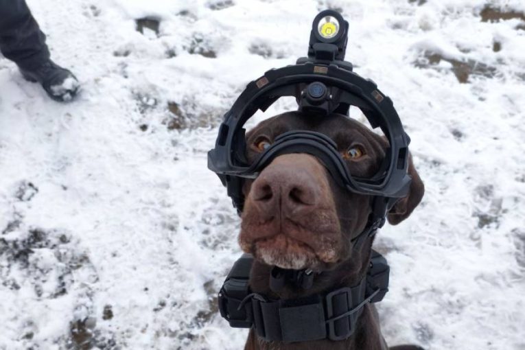 Přilba pro psa se dá doplnit i o náhubek, ochranu sluchu, světlo nebo zábleskový maják. Její největší specialitou je však vestavěná kamera, která přenáší obraz přímo k psovodovi. Ten vidí přesně to, co vidí pes. Prohlédněte si přiložené video.