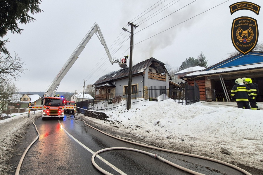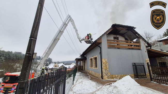 Po příjezdu na místo zásahu hasiči zjistili, že se jedná o rozsáhlý požár střechy rodinného domu. Kvůli zásahu obousměrně uzavřeli silnici a zahájili hasební práce.
