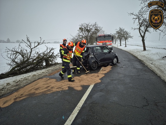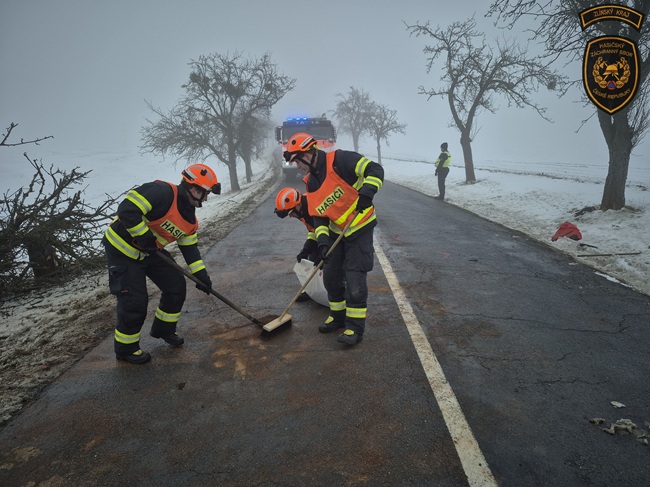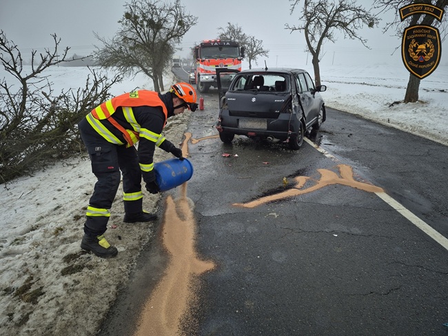 Hasiči provedli u havarovaného vozidla protipožární opatření a odpojili autobaterii. Uniklé provozní kapaliny zasypali sorbentem.