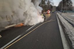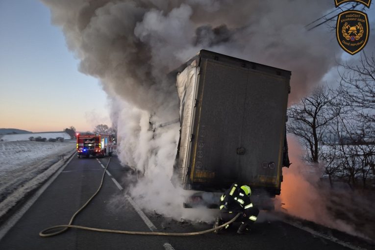 Když hasiči dorazili na místo, byl v plamenech přívěs nákladního auta. Neprodleně proto začali hasit vysokotlakým proudem. „Požár se podařilo v krátké době lokalizovat a zcela uhasit. Následně byl provoz na komunikaci částečně obnoven a vozidla projížděla místem kyvadlově jedním jízdním pruhem. Událost se obešla bez zranění,“ popsala mluvčí hasičů Lucie Javoříková.