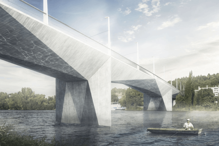 Most navrhli architekti ze studia Atelier 6 ve spolupráci s umělcem Krištofem Kinterou, který připravuje i uměleckou výzdobu. Stavba je označována za jedno z nejvýraznějších architektonických děl posledních let, kombinaci moderní architektury, sochařství a funkční dopravní stavby. Na smíchovské straně má vzniknout tramvajová zastávka a prostor pod mostem se promění v světelnou zahradu s lampami z celého světa, na podolské straně pak vznikne místo pro kulturu a volný čas.
