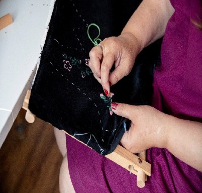 Zároveň se věnuje tradičním regionálním vyšívacím technikám, jako je plastická výšivka těšínských sukní, bílá výšivka rukávů nebo křížková výšivka typické pro goralské kroje. Od roku 2019 pořádá kurzy šití, paličkování a vyšívání, kde své dovednosti předává dál.