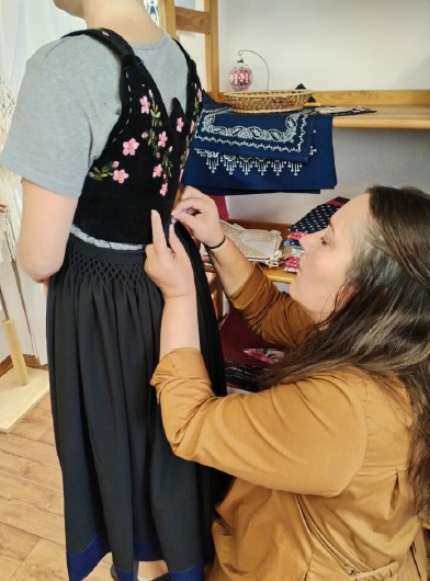 Ivana Di‑Giustová se k tradičním krojům dostala přirozenou cestou. Vyučila se krejčovou a k ručním pracím ji odmala vedla její babička. Když její děti začaly chodit do folklórního souboru, začala se starat o jejich kroje. Postupně dostala do péče i kroje dalších členů souboru a obyvatel Jablunkova a okolí. V roce 2009 si otevřela vlastní šicí dílnu. Zpočátku se věnovala i běžné krejčovině, ale postupně se specializovala výhradně na renovaci a výrobu krojů Těšínského Slezska. Nejčastěji pracuje na ženském těšínském kroji, jablunkovských krojích a goralském oděvu.