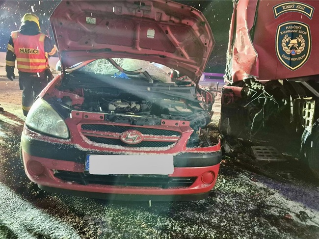 Řidička ve voze značky Hyundai najížděla včera krátce před devatenáctou hodinou v Napajedlech na dálnici ve směru na Přerov. V té době mírně sněžilo a silnice pokryl sníh. „V pravotočivé zatáčce dostala smyk a přejela do protisměru, kde v tu dobu sjížděl z dálnice kamion s návěsem. Její vozidlo narazilo do kamionu levou boční částí a řidička utrpěla velmi závažná zranění,“ popsala policejní mluvčí Monika Kozumplíková.