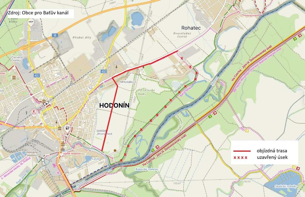 Stavba je rozdělena na dva samostatné úseky. První úsek povede od přístaviště v Hodoníně směrem k vodnímu cvičišti, druhý úsek propojí přístaviště v Rohatci s budoucí lávkou přes řeku Moravu. Rozšíření cyklotrasy podél Baťova kanálu je dalším významným krokem města Hodonína v rozvoji veřejné infrastruktury. Nový asfaltový úsek umožní plynulejší pohyb cyklistů, zlepší návaznost na stávající síť tras pro každodenní i rekreační využití a zároveň nabídne pohodlnou jízdu i milovníkům in-line bruslení.