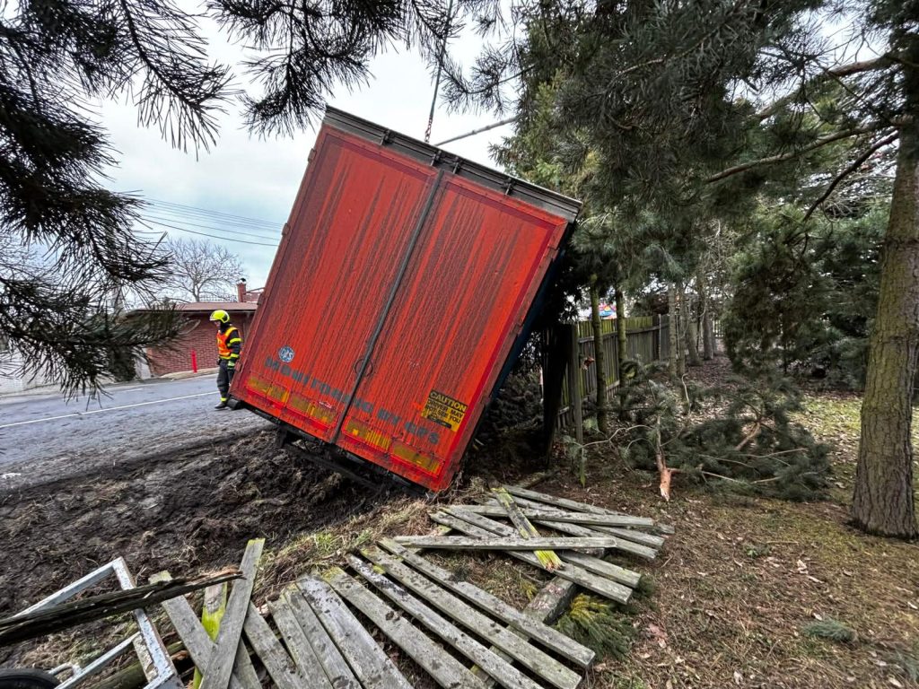 Sjetím poškodil několik stromů a oplocení rodinného domu. „Tahač se zastavil napříč oběma jízdními pruhy na komunikaci a blokoval tak provoz v obou směrech. Dechová zkouška na přítomnost alkoholu byla u řidiče negativní. Dopravní nehoda se obešla bez zranění, pouze s hmotnou škodou,“ upřesnil mluvčí. Policisté odkláněli dopravu skrze obec Brumovice.