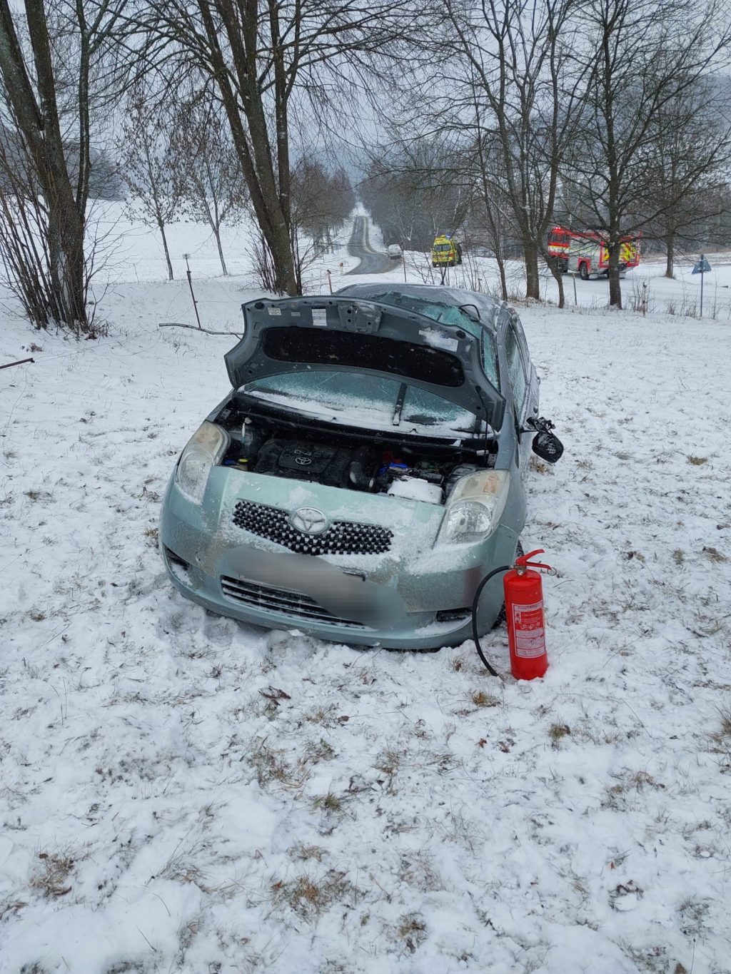 Před třetí hodinou odpoledne se u Věcova převrátilo osobní auto, dva lidé utrpěli zranění. „Řidič dostal smyk a převrátil se s vozidlem přes střechu a skončil na louce,“ popsala mluvčí.