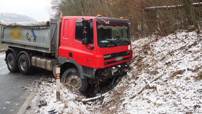 Náklaďák na ledovce smetl osobní auto a narazil do autobusu