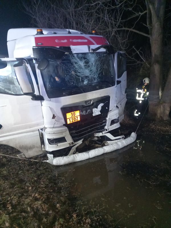 RYCHNOVSKO – Klidný čtvrteční podvečer na silnici I/11 přerušil výjezd záchranných složek. Cisternové nákladní vozidlo tam vyjelo mimo komunikaci a skončilo v příkopu poblíž vodního toku. Na místo byly krátce před 18. hodinou vyslány čtyři jednotky hasičů.