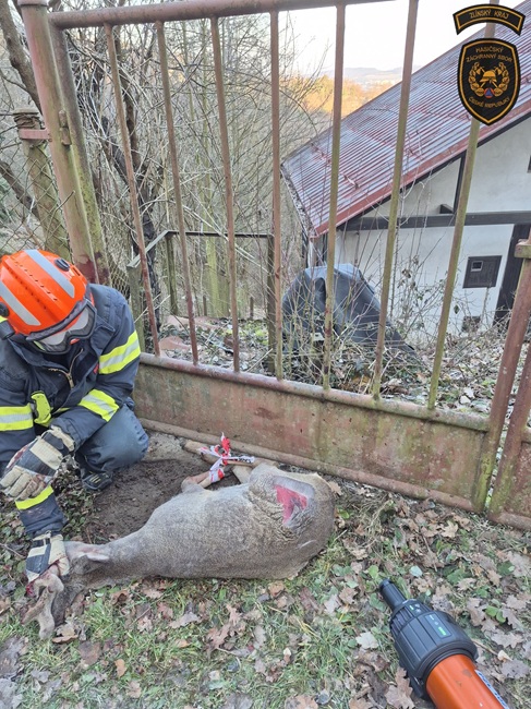 Už při příchodu bylo patrné, že srnec je zraněný a vysílený. „Vyděšené zvíře se zaklínilo mezi kovové příčky a marně se snažilo vysvobodit. Každý další zoufalý pohyb však situaci jen zhoršoval. Příčky brány mu způsobily vážná poranění a bylo zřejmé, že bez rychlé pomoci nemá šanci se samo dostat ven,“ popsala mluvčí hasičů Lucie Javoříková.