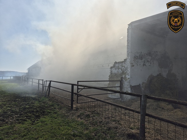Hasiči povolali na pomoc manipulátor, s jehož pomocí vyváží hořící podestýlku ven z objektu, kde ji prolévají vodou a dohašují. Požár se mezitím rozšířil také do podkroví, kde nyní probíhají další hasební práce.