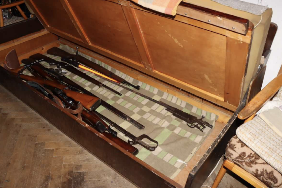 Jednalo se například o pistole, opakovací i jednoranové pušky, historické perkusní a křesadlové zbraně, vystřelovací nože a desítky bodno-sečných zbraní. Nechyběly ani krabice a muniční truhlíky plné nábojů různých ráží.