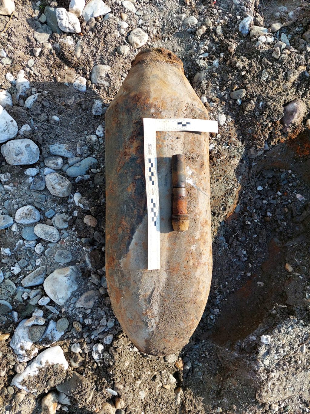 Po rozhodnutí pyrotechniků policisté vymezili společně s hasiči bezpečný perimetr 200 metrů, přičemž evakuovali zhruba 80 osob. Následně pyrotechnici určili, že se jedná o sovětskou leteckou pumu z 2. světové války o váze zhruba 100 kg, FAB-100 a rozhodli o rozšíření bezpečného perimetru.