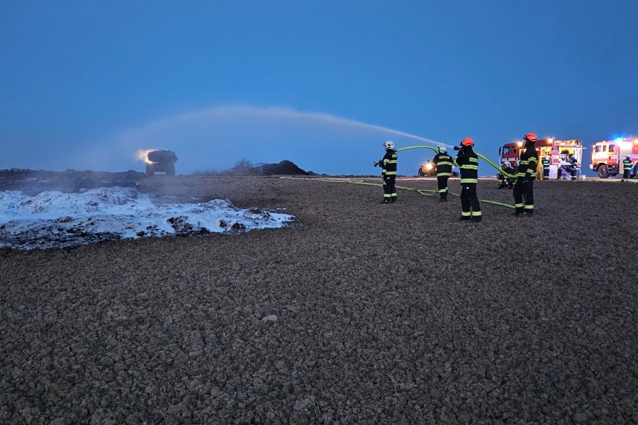 V pondělí po dvanácté hodině hasiči vyjížděli k požáru hnojiště u Chvalkovic na Bučovicku. Po pátečním požáru, kdy požářiště hlídali majitelé, v pondělí výrazně zesílil vítr a došlo k opětovnému rozhoření hnojiště. Na místo vyjelo šest jednotek hasičů včetně speciálního nakladače a zásoby pěnidla z Tišnova. Celé odpoledne hasiči vyváželi hnůj na pole a prolévali ho vodou. Při zásahu využili pěnidlo, které snižovalo povrchové napětí vody a zefektivnilo hasební práce.