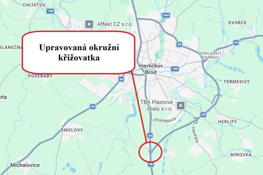 - zvýšení středového ostrůvku ve směru do Havlíčkova Brodu, který bude přejízdný pro nadměrná vozidla
