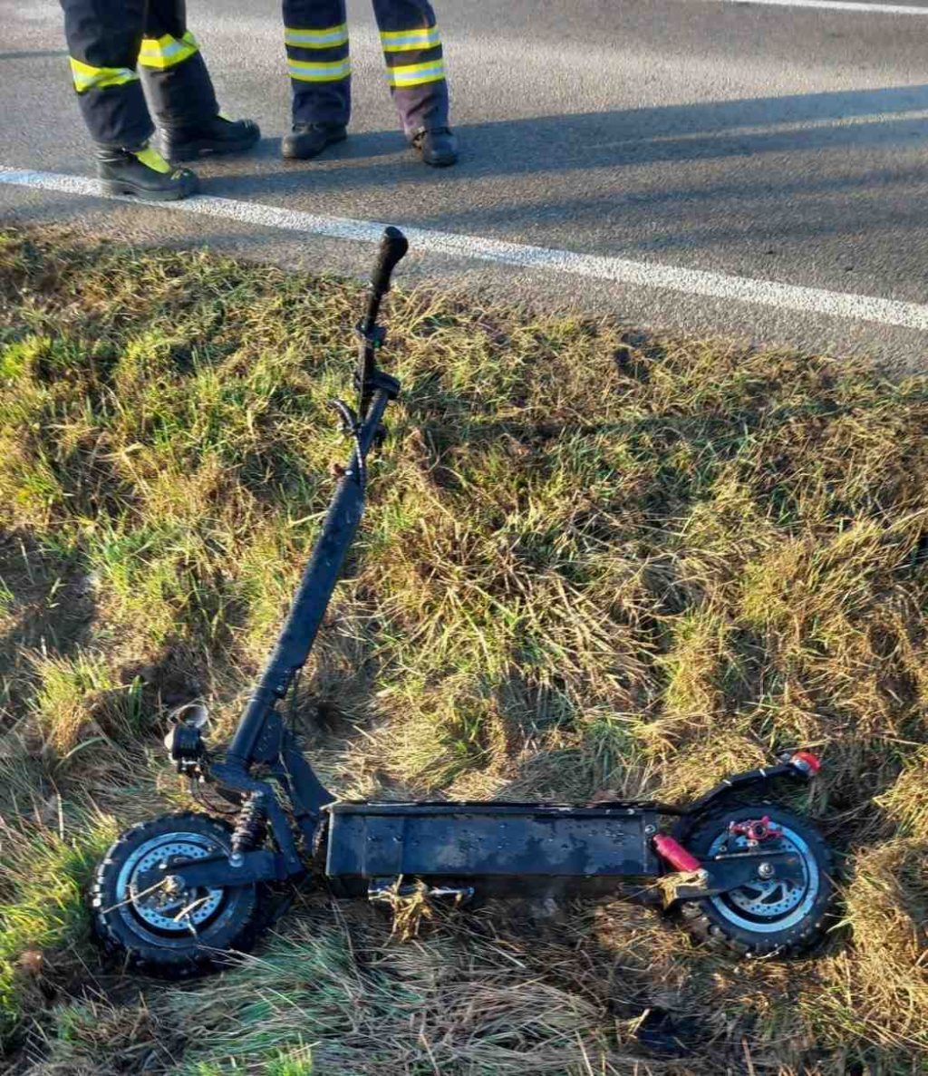 Při příjezdu první jednotky ležela hořící koloběžka v příkopu u silnice. Po pár minutách hasiči požár jedním vodním proudem uhasili. Demontovali kryt koloběžky a baterii ochlazovali. Ta musí být teď uložena minimálně 24 hodin ve vodní lázni, následně ji bude muset majitel ekologicky zlikvidovat.