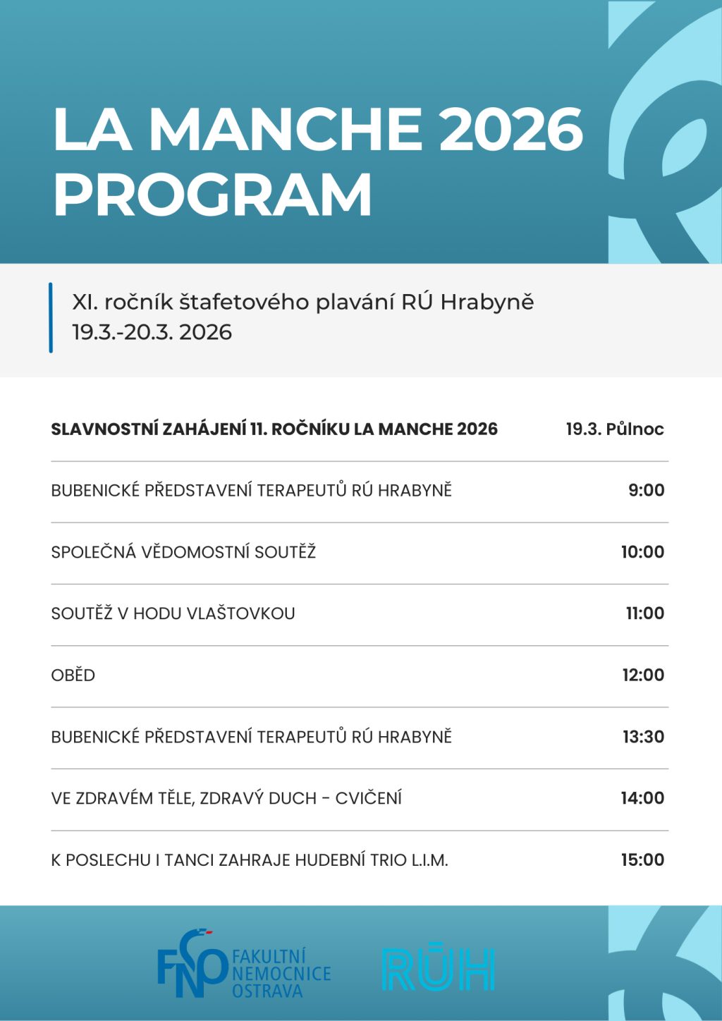 Plavat se bude nepřetržitě až do pátečního odpoledne 20. března. Letošní ročník se ponese v hravém duchu pod tématem Hola, hola, škola volá! Celý páteční program, který začne v 9:00 bude stylizovaný jako školní den plný vyučovacích hodin, během kterých se návštěvníci mohou těšit na vystoupení, soutěže i společné aktivity připravené zaměstnanci rehabilitačního ústavu. „Plavecká štafeta je pro naše pacienty významnou sportovní i osobní výzvou. Podporuje fyzickou kondici a vytrvalost. Účastníci společně zdolají hranici symbolizující překonání vlastních možností,“ doplnila lékařka závěrem.