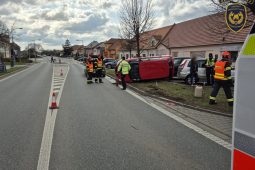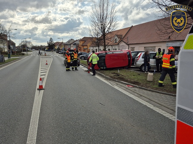 U prvního odpoledního zásahu zasahovali hasiči krátce před druhou hodinou v Ostrožské Nové Vsi. Srazila se tam dvě osobní vozidla, jedno zůstalo převrácené na boku. „Na místě byla jedna zraněná osoba,“ uvedl mluvčí hasičů David Martinec.