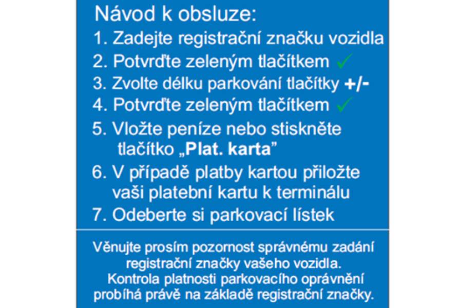 Radnice apeluje na řidiče, aby si svou registrační značku pamatovali, což výrazně urychlí odbavení u terminálu.